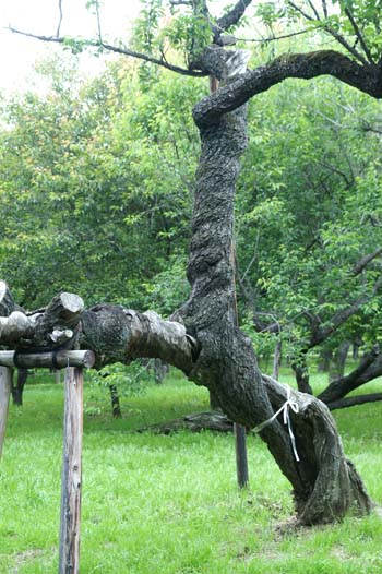 樹皮の裂け目にはタンポポが (2006.5.27 撮影)