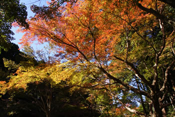 もみじ谷の紅葉情報をお届けします。(全て本日撮影の写真です。散策予定の参考にしてください。) 偕楽園の紅葉もこれからです。 偕楽園に近い茨城県立歴史館の銀杏が見頃です。 偕楽園では、二季咲桜、十月桜等が咲いています。 ライトアップされたもみじ谷はこんな感じです。→「2010.11.13の夜のもみじ谷」にリンクします。 |