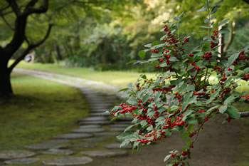 紅葉が美しい偕楽園のもみじ谷。紅葉前のもみじ谷の様子です。